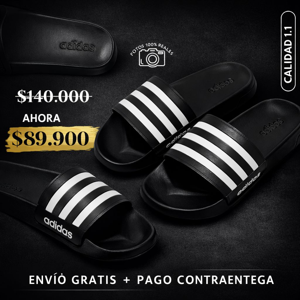 Sandalia adidas negra x blanco clásica